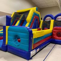 Adrenaline junky? Check out our Adrenaline Rush Obstacle Course. This unit features a curved obstacle area, a rock wall, and dual lane slide. Perfect for any event!