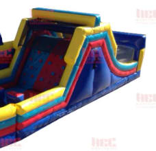 This is one half of our Adrenaline Rush-3 Obstacle Course. This section features the rock/climbing wall and dual lane slide. Perfect for any events with smaller areas!