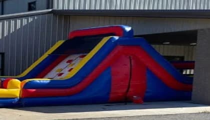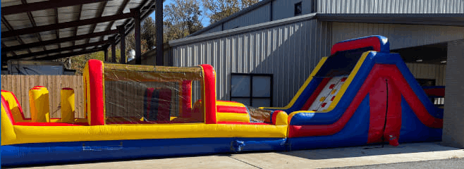 Crawl, jump, climb, race, slide. This obstacle course has it all!. This large bright colored unit will be the hit of any event.