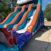 Our Big Kahuna dual-lane slide is one of our largest at 19-feet tall.