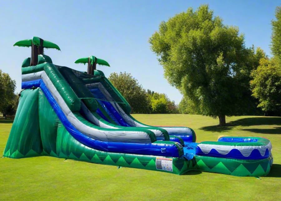 The DUAL LANE slides have TWO inflatable Palm Trees